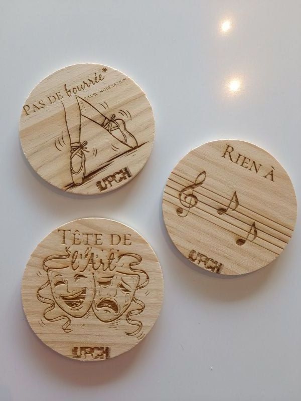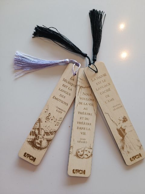 Vous pouvez acheter nos objets : Sacs, crayons, marque-pages sous-verres…